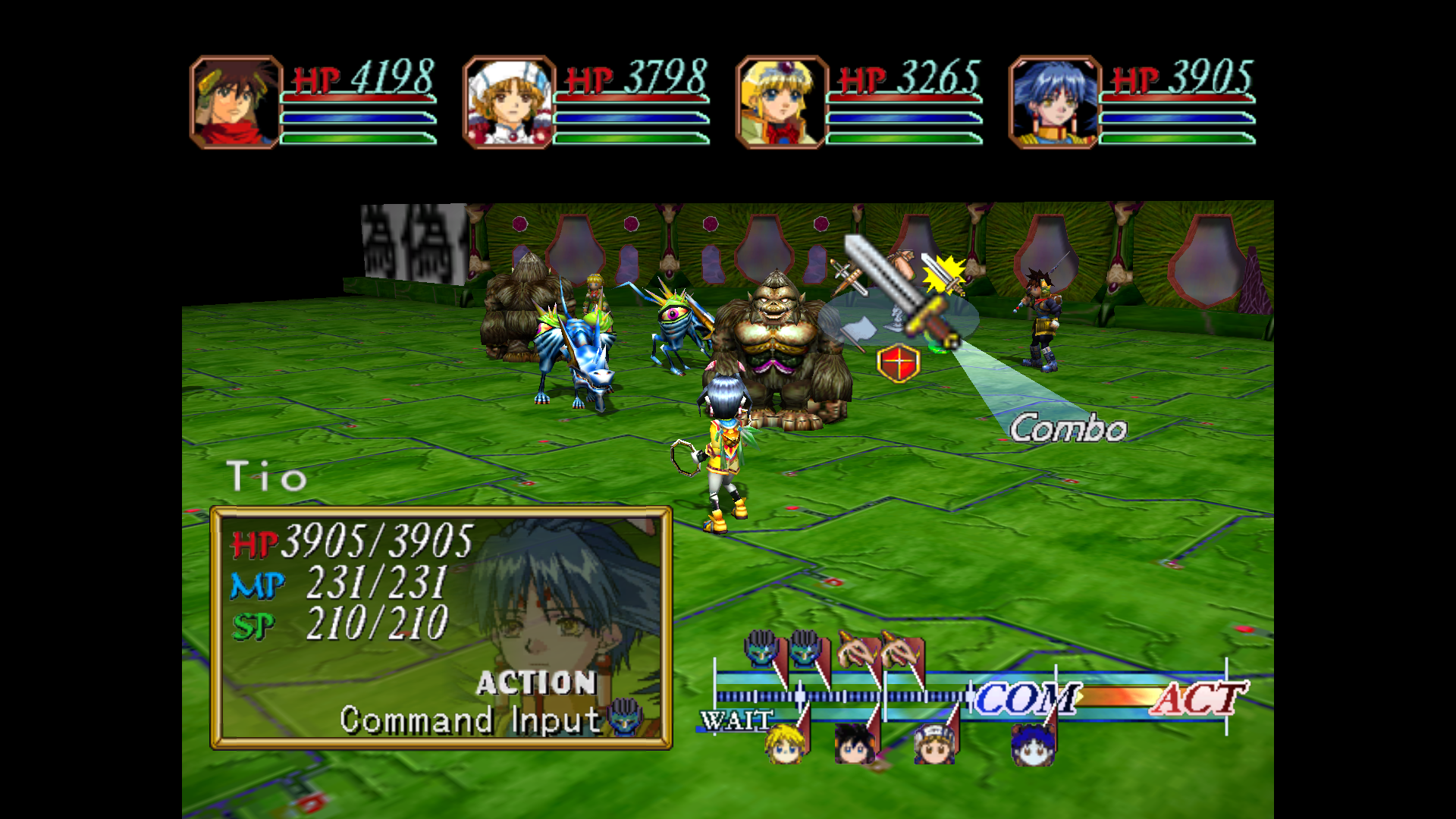 The big claim to fame for the Grandia games is their battle system, where all party member and enemy turns are tracked on a gauge. If someone is attacked at the right time with the right ability, that character’s turn can be canceled completely. In theory, the system is pretty innovative. In practice, standard battles are easy enough (especially with the aforementioned wealth of save points) that you will just want to mash your way to victory with regular attacks. Canceling actions becomes a big and respectable aspect of boss battles though, which is where the game best shines. Bosses are usually multi-target affairs, with many abilities and status ailments to inflict. Winning these fights is always satisfying, but seldom a challenge if you know what you are doing.