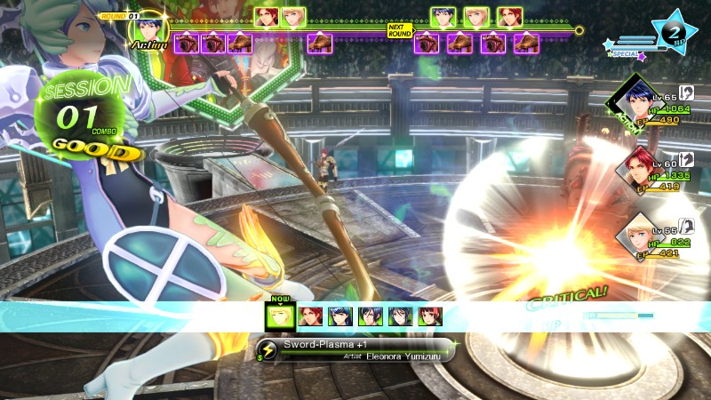 The real meat lies in the turn-based combat, initiated by touching enemy Mirages in dungeons. On the surface, it plays out much like Shin Megami Tensei, with many of the skills retaining their names from those games. The rock-paper-scissors mechanics of Fire Emblem are also present in characters and enemies’ weaknesses to weapon types like swords and bows. The J-pop/idol mechanic however elevates the experience into something fresh and fun. Exploiting an enemy’s weakness creates a chain of attacks called a Session among party members where no EP (points used for skills) is spent after the first attack. This even extends to characters not in the immediate party, resulting in regular 7-hit attacks later in the game. Additionally, characters have randomly activated Ad-libs, powerful special attacks that force Sessions to start. There are also Special Performances, equally powerful attacks that are activated by spending meter from an “SP” gauge and again force Sessions. And on top of all of that, there are also collaborations, special abilities randomly activated during Sessions that produce myriad positive effects.