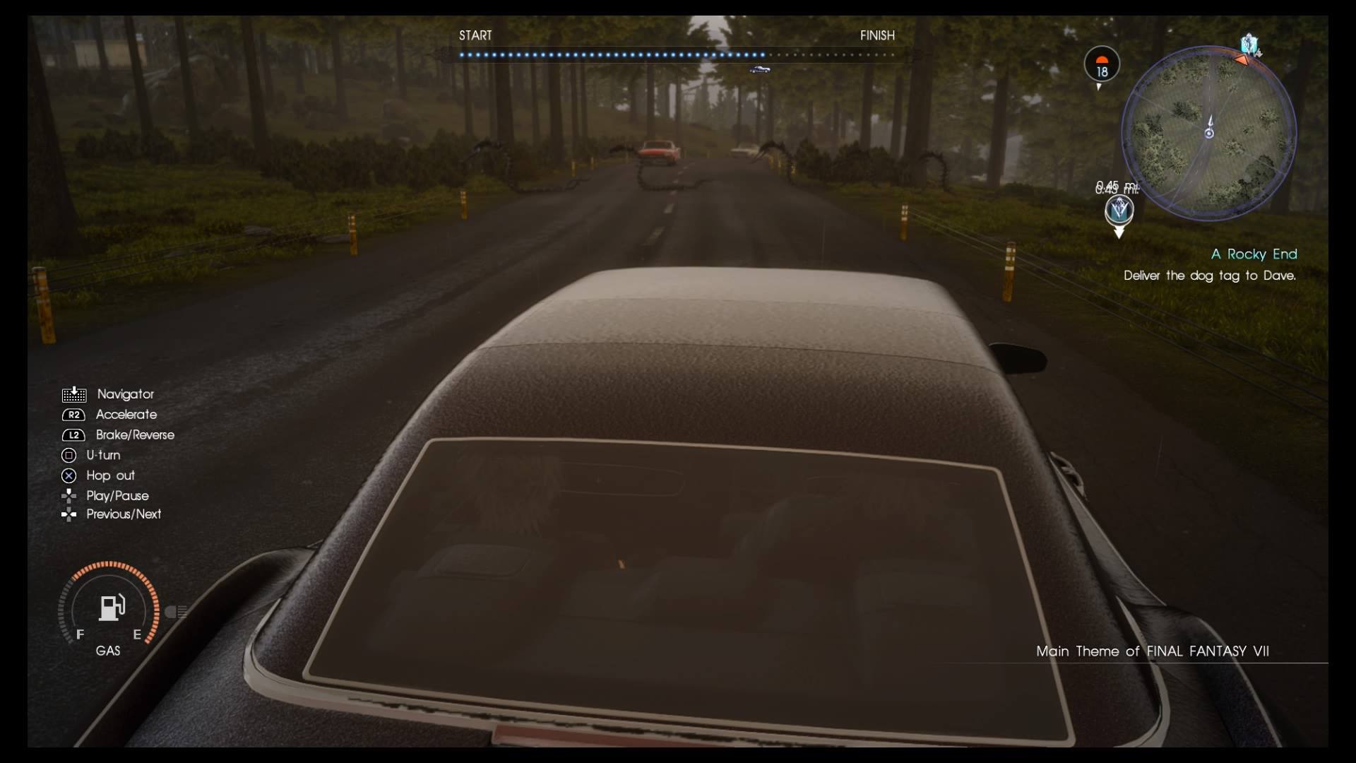 On the bright side though, I will say that being chauffeured across the countryside in an expensive car (your primary mode of transportation, aside from chocobos for off-roading) is actually very relaxing in a “Sunday drive” sort of way. It’s nice to see the main characters goof around with each other in the car, and I was delightfully surprised the first time that the car paused in order to let a family of monsters cross the road. I appreciated those quiet, heart-warming details, and it helped that songs from many old Final Fantasy games can be played on the stereo.