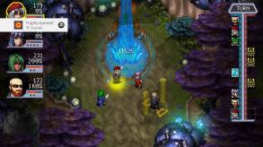 The combat is a total 180 from the story: It is inventive, fresh, and fun. It puts together a lot of elements rarely seen in RPGs in such a way that it feels unlike any other game I’ve played. For instance, not only do all enemies appear on screen (no random battles here), but enemies who are defeated stay dead. You can return to past areas all you want, roaming empty hallways because enemies seemingly never respawn. The game is balanced well enough that it’s not an issue either; there was never a time where I wished I could level grind. (But then again, there are a couple optional super bosses that I skipped.) And speaking of which, the game has four difficulty settings anyway. I played on the second-hardest setting, but admittedly the challenge was still very low.